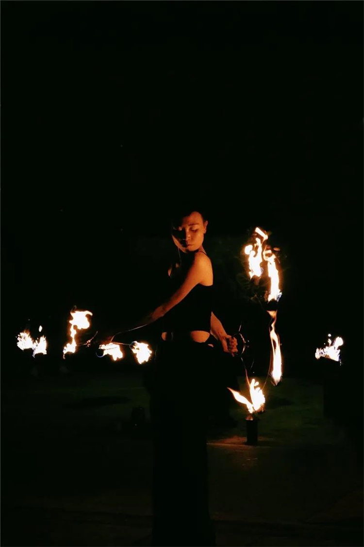 伴隨著夕陽西下,大理的天空霞光萬道,白日里燥熱的因子慢慢消散,踏著微涼的晚風(fēng),大理麋鹿星球便迎來了一天中最美的時(shí)候。作為一個(gè)包含玩、吃、逛、游、購、娛、體、秀等多元新式的夜間市場(chǎng),麋鹿星球是一座文青會(huì)“陷進(jìn)去”的小城,它為當(dāng)?shù)鼐用窦皝淼酱罄淼挠慰吞峁┝艘粋€(gè)新玩場(chǎng)。晚上七八點(diǎn),集市就開始熱鬧起來,人們?cè)诟鱾€(gè)攤位前停留穿梭,集市正中間,來自天南海北的多位火舞表演者正在盡情玩火,表演動(dòng)靜結(jié)合,靜則剛,動(dòng)則柔,變化萬千,視覺沖擊力極強(qiáng);火力之強(qiáng)勁,引得在場(chǎng)觀眾紛紛駐足觀看,盡情喝彩,仿佛置身于野外的篝火晚會(huì),將歡樂輻射到麋鹿星球的每一角。